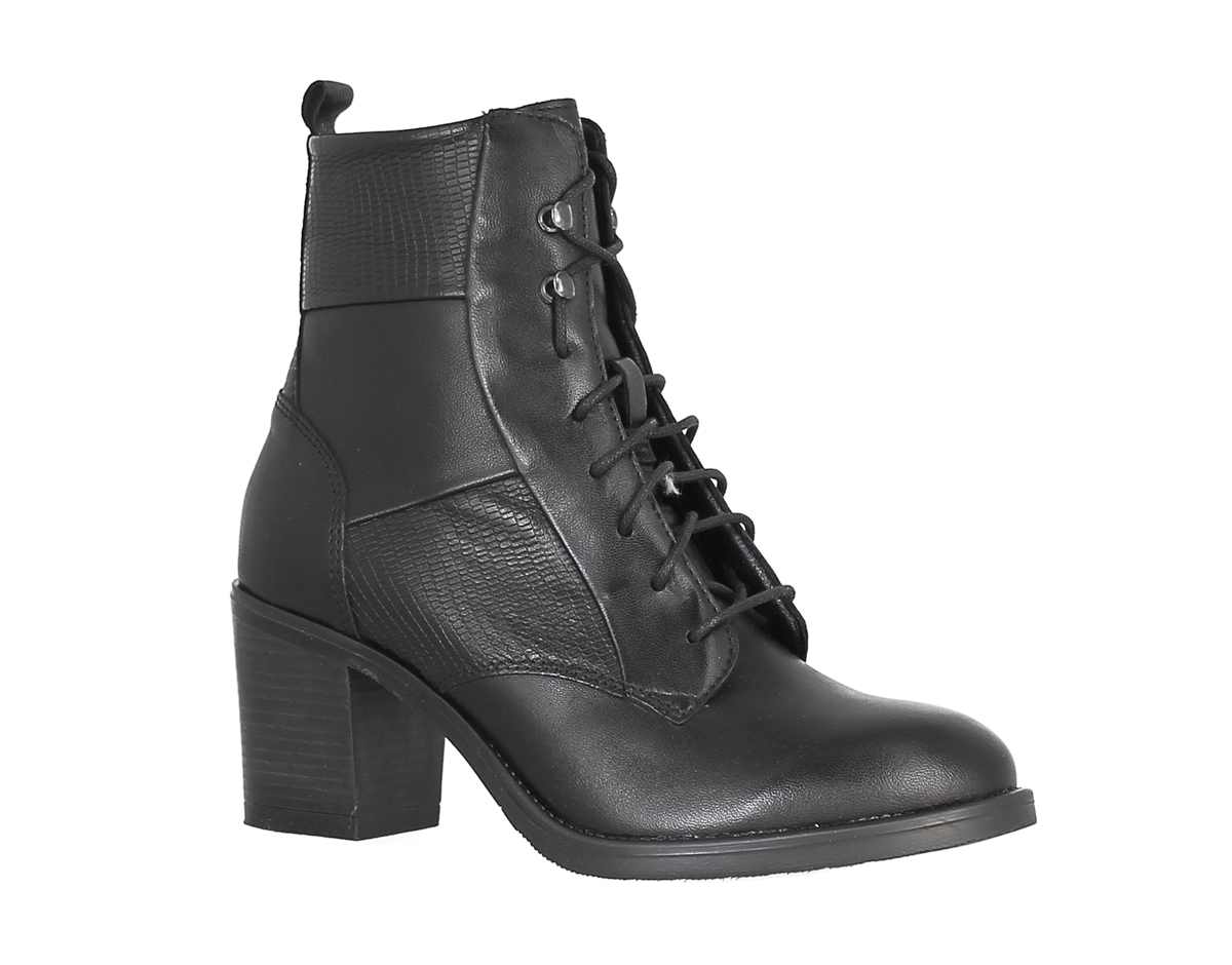 Bottillon en cuir, fermeture lacet et tirette, talon 5 cm.