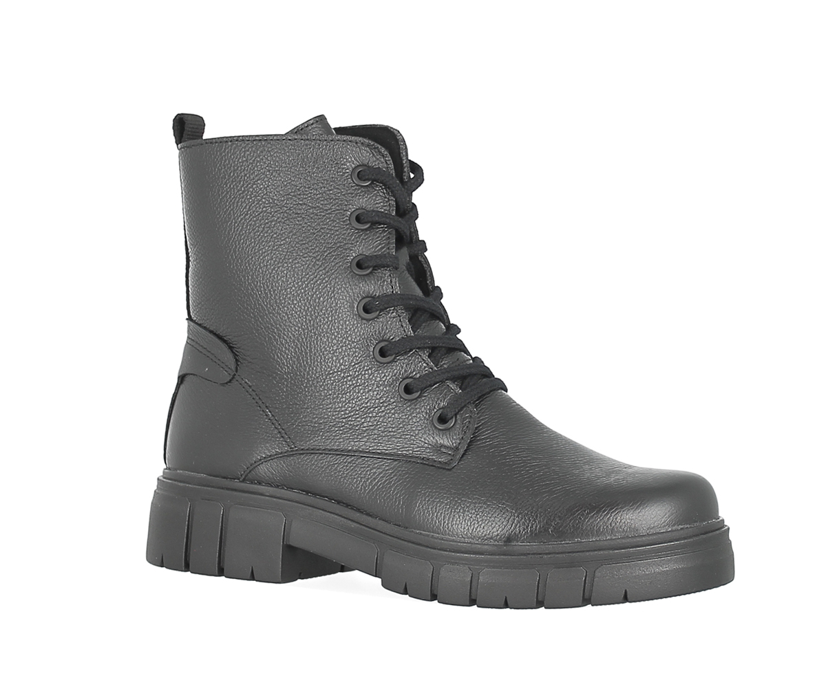 Bottine en cuir, tirette latérale, semelle amovible.