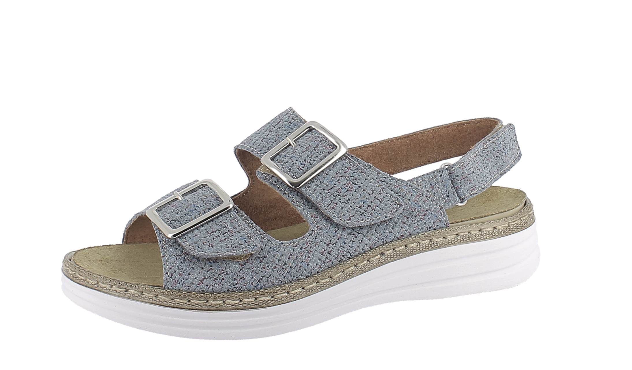 Sandale en nubuc imprimé – fermeture 3 velcro – semelle amovible.